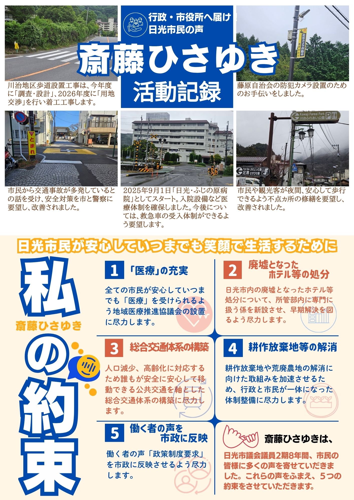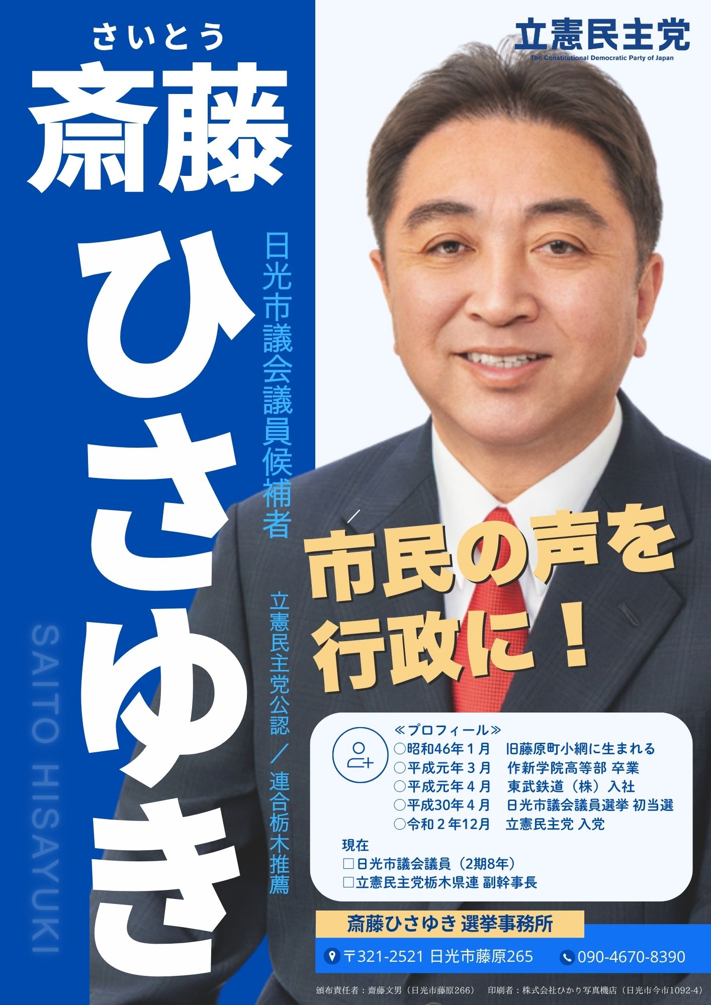 日光市議会議員候補 斎藤ひさゆきの選挙ビラ