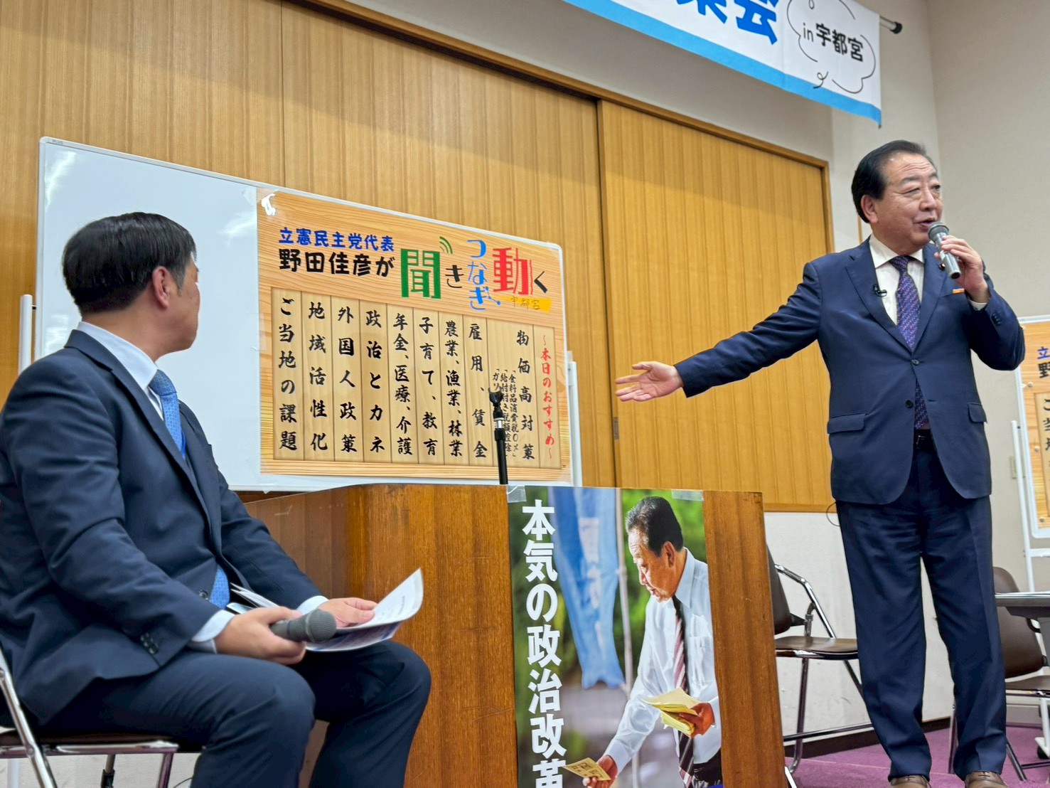 野田代表は「多様性というのはわが党の基本精神だ。教育の現場では(テストの)平均点を伸ばすだけでなく、個性を伸ばすやり方もある。多様性を尊重し合う社会を学校の現場でも作っていきたい」としつつ、「具体的な話があれば教えてください。宇都宮市議会や栃木県議会、あるいは国政につないでいきたい」と話し、意見を政治に「つなぐ」姿勢を強く打ち出しました。