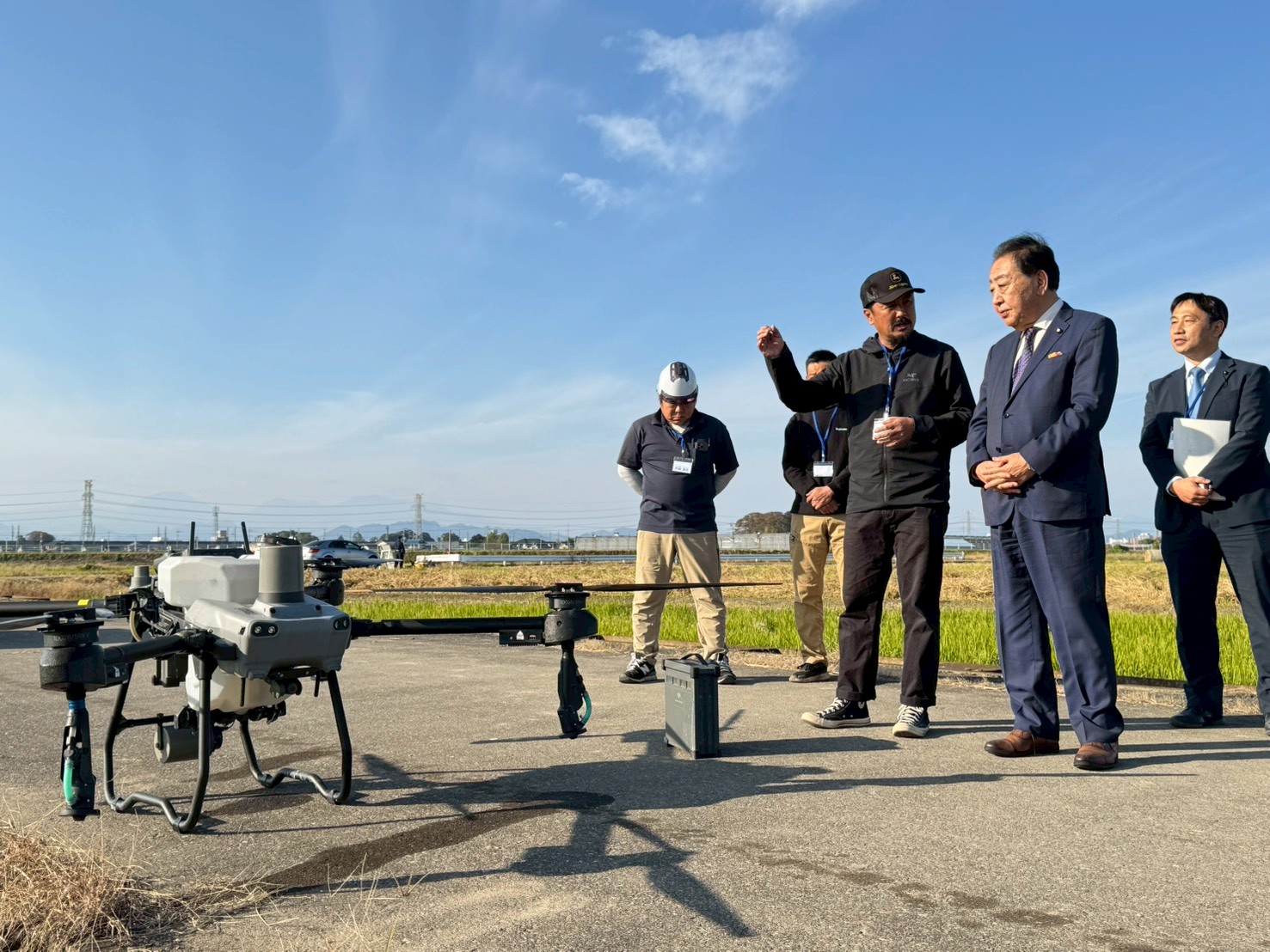 今回視察した宇都宮市内の米農家は、代々続く30町歩の農家で、経営は家族で行っています。プロスポーツ選手の第2の人生として農業に従事してもらう活動も行っており、農地を案内してもらった後には、幅広い世代の農業者を集めた座談会が行われました。